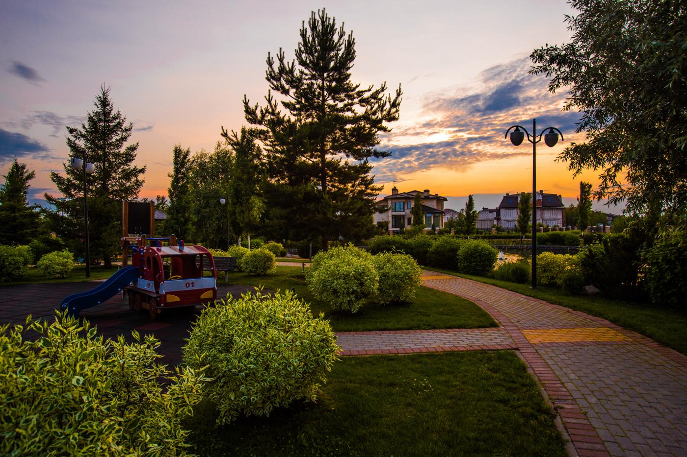 Большая часть территории посёлка занята озеленением: здесь разбиты парки и прогулочные зоны с беседками и скамейками, оборудованы workout-площадки и пространства для занятий спортом. При этом важным преимуществом остаётся расположение на Новорижском направлении — всего в нескольких минутах езды доступна развитая инфраструктура: детские сады и школы, рестораны, торговые центры, супермаркеты и фитнес-комплексы.